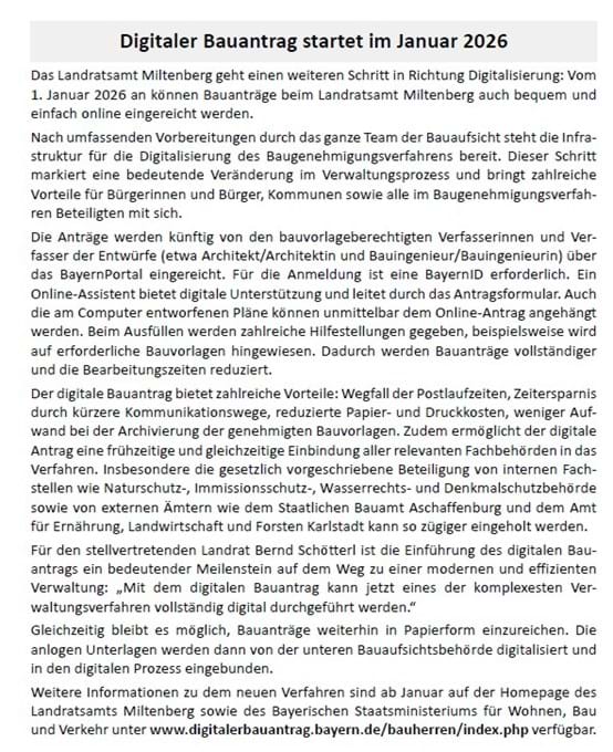 Vom 1. Januar an können Bauanträge beim Landratsamt Miltenberg auch online eingereicht werden.
