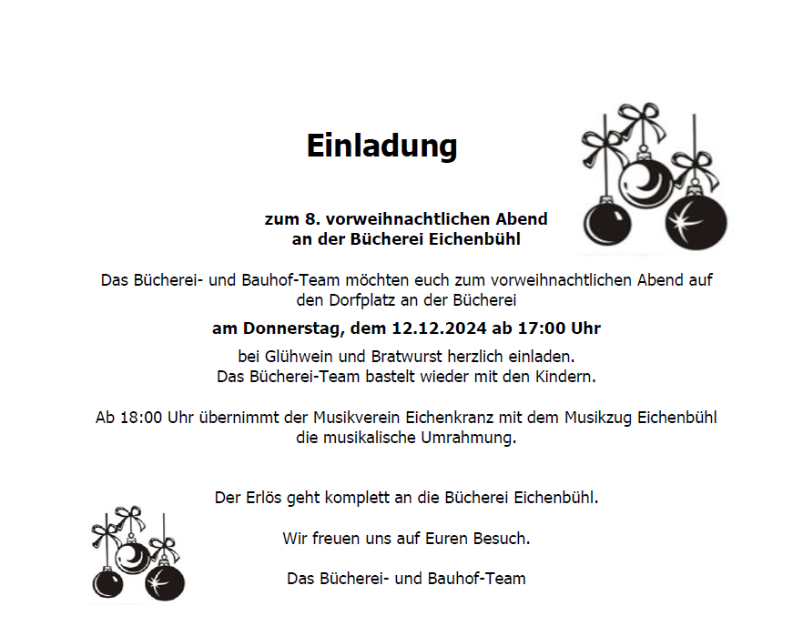 Vorweihnachtlicher Abend an der Bücherei Eichenbühl